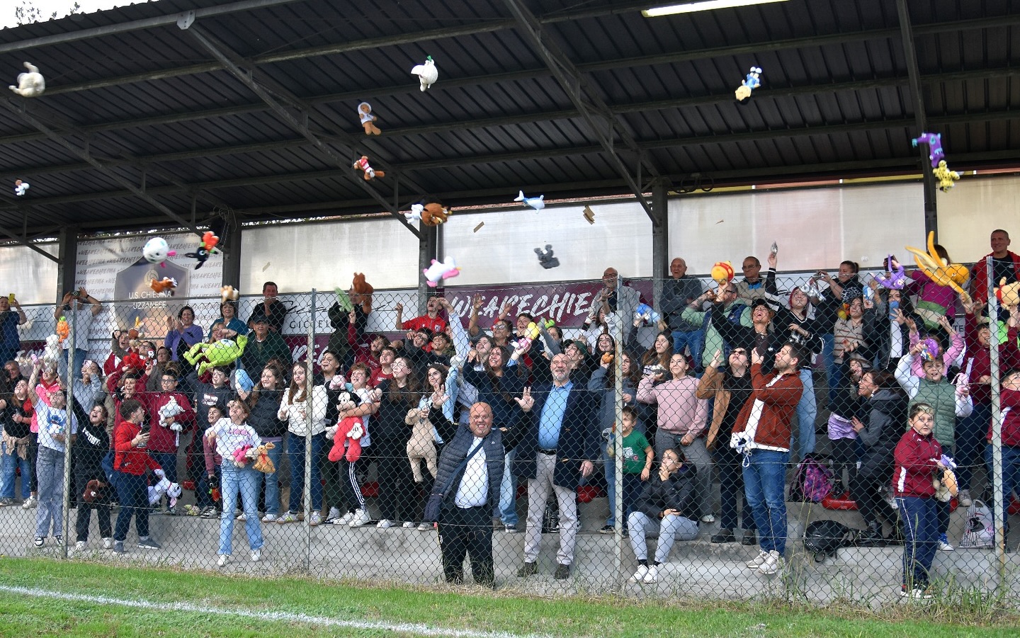 Così è stato a Chiesina Uzzanese oggi (16 novembre). Alla fine del primo tempo, i bambini del settore giovanile amaranto hanno lanciato i loro peluche i mezzo al campo, con l’obiettivo di regalarli a piccoli bambini ricoverati nel reparto di pediatria dell’ospedale San Jacopo di Pistoia. Dopo il lancio infatti i pupazzi sono stati raccolti e saranno consegnati agli addetti del reparto dell’istituto sanitario.