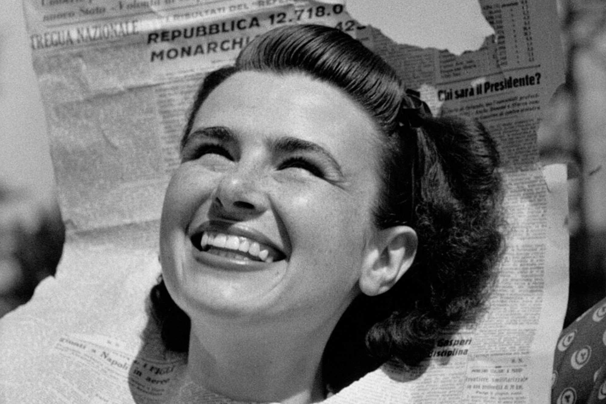In copertina: Anna Iberti, 24 anni, mostra il Corriere della Sera con il titolo “È nata la Repubblica Italiana”, Milano, 2 giugno 1946. Foto: Federico Patellani / Wikimedia Commons