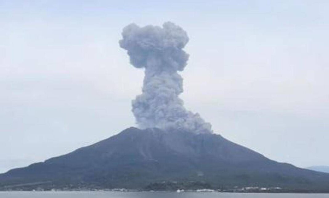 Il vulcano Sakurajima si ‘risveglia’: alta colonna di cenere e fumo