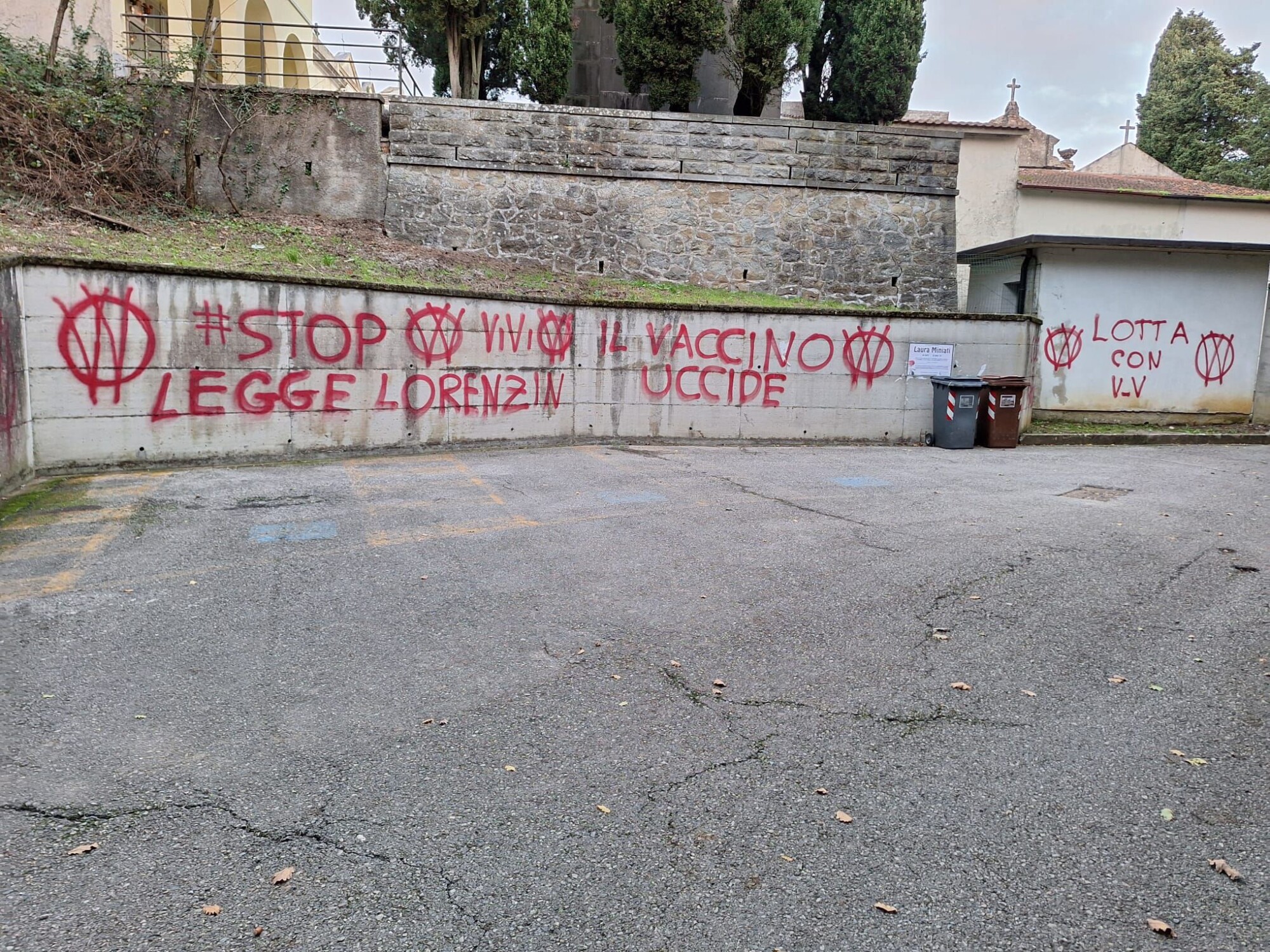 LAMPORECCHIO – Imbrattato da scritte no vax le mura del cimitero di San Baronto.