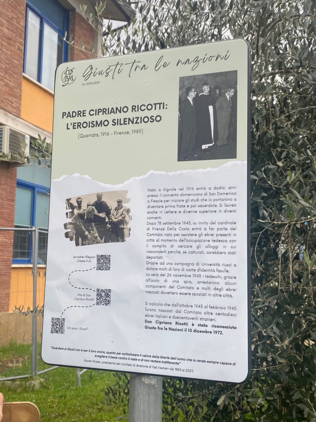 Anpi Quarrata ha organizzato un'iniziativa per ricordare la figura di padre Cipriano Ricotti e della famiglia Guidotti, ricordandone l'impegno per salvare dalla deportazione numerosi cittadini
