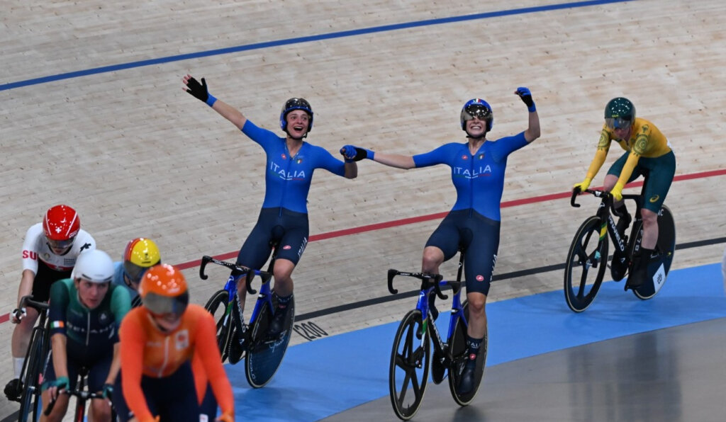 Vittoria Guazzini, 23 anni, e Chiara Consonni, 25 anni, precedono Gran Bretagna e Olanda. Si aggiudicano l’oro olimpico con 37 punti, davanti alla Gran Bretagna (argento con 31 punti) e all’Olanda (bronzo con 28 punti). Prestazione capolavoro delle due azzurre, bravissime a conquistare un giro nel finale (20 punti) e ben 17 punti negli sprint.